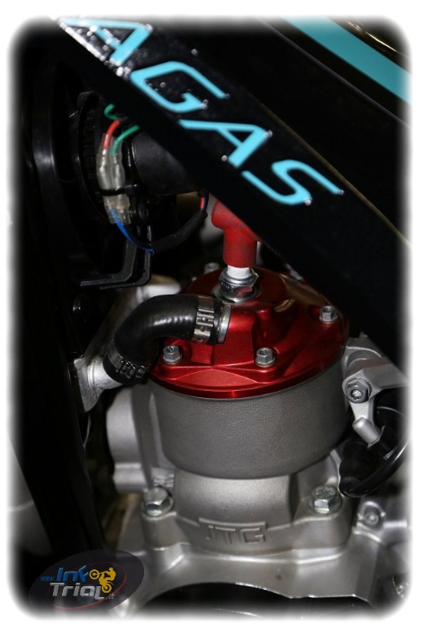 Novità principale è il carter frizione ricavato dal pieno e lavorato alla macchina utensile che, il team trentino ha studiato insieme alla Costa Special Parts, caratterizzata da un attuatore più grande che permette di avere maggiore modulabilità e richiede minor carico alla leva della pompa AJP grande scelta anche dai piloti del team ufficiale.